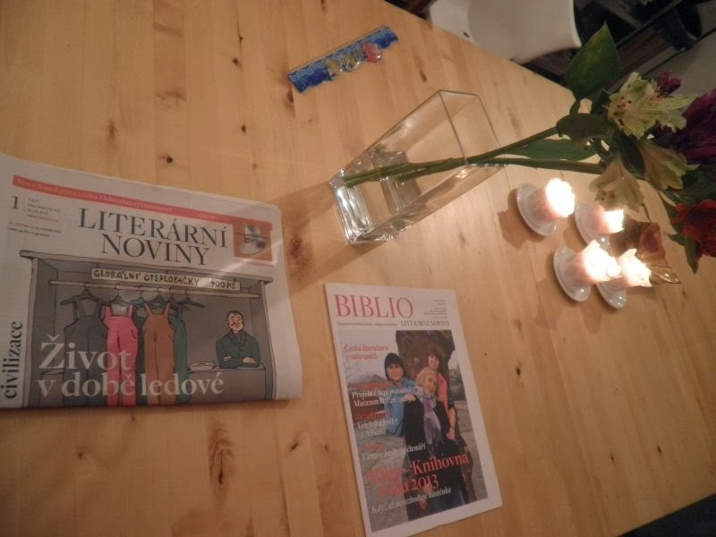 už stojí Literární noviny, ale vyplatí se. Názvy článků mě zaujaly, beru si je s sebou zítra na chalupu a uvidím, jestli se mi podaří něco přečíst, jestli jsem už příliš nezhloupla. Čas od času si dávám takový soukromý test a jeho výsledky jsou ještě soukromější.
