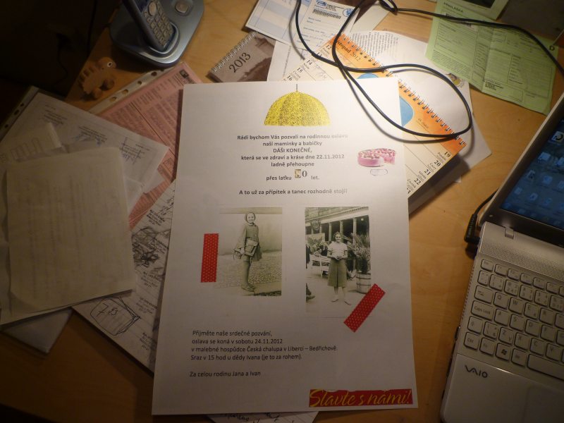 To je hezká modifikace! A pozvánku jsem vytvářela já, na druhé straně jsou ještě okopírované fotky z jejího života. Velký formát A3, aby se jich tam vešlo hodně.
