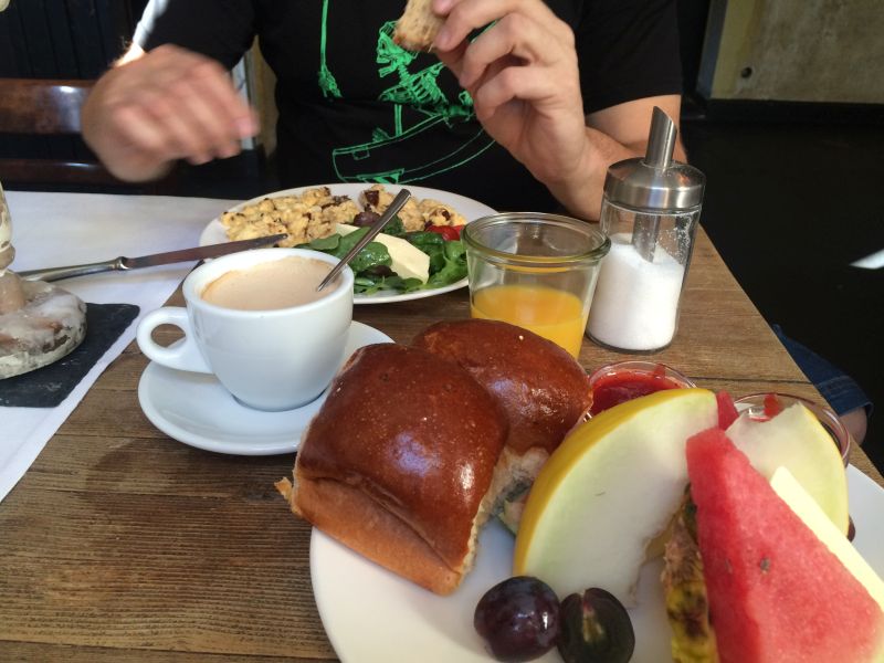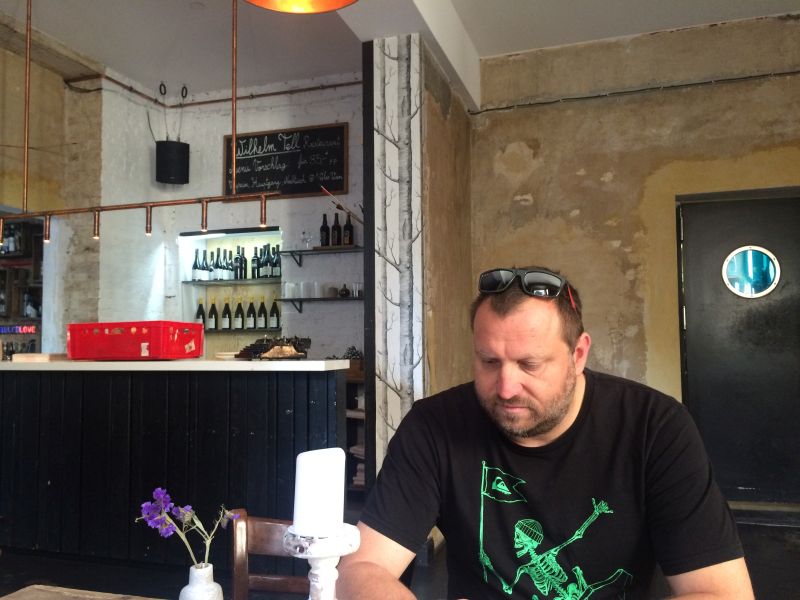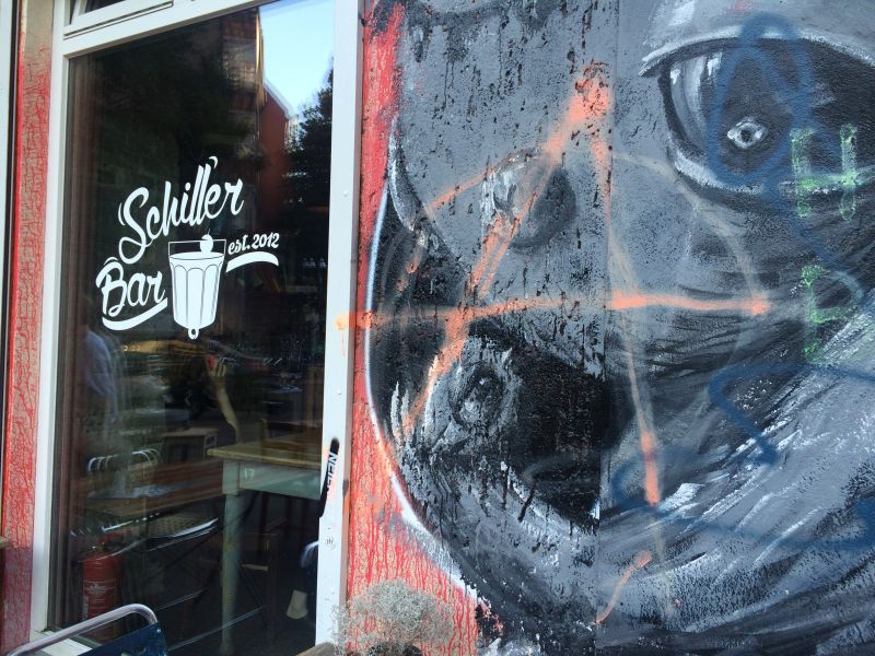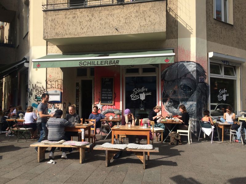 Náš nejoblíbenější bar byl hned pár metrů od domu. Můžete tu snídat, obědvat, večeřet, snít, číst … cokoli chcete. Bydleli jsme ve čtvrti Neukolln (nejde mi udělat nad „o“ přehláska), bydlí tady hodně Turků. První den jsme se toho skoro lekli, ale postupem času už to nevnímáte. Ženy chodí v dlouhém oblečení s šátkem na hlavě. Sedí takhle i v baru. Když jsme chodili v noci domů, po cestě jsme míjeli podniky, které nevypadaly zrovna přívětivě. Člověk by se skoro bál, ale pak najednou uvidíte, jak u jednoho pajzlu venku sedí dvě starší echt německé dámy a hrají spolu kanastu.