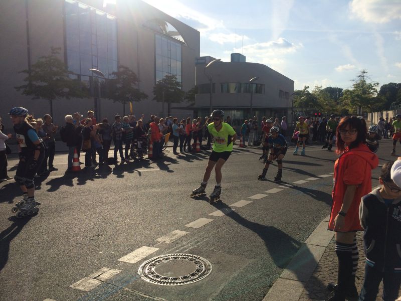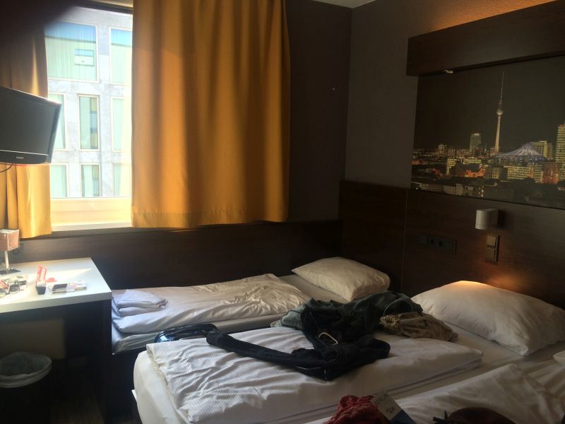 První ubytování jsme si zajistili v hotelu hned vedle Hauptbanhof, protože náš pronajímatel přes Airbnb měl volno až od neděle. Cena hotelového pokoje o velikosti 10 m2 (včetně koupelny) ovšem byla hodně vysoká. Brzy jsme pochopili proč. V Berlíně se totiž o víkendu konal mezinárodní maraton v jízdě na in-linech a běhu. Zřejmě proto se nám nedařilo sehnat nic levnějšího. Sportovci ovládli centrum města.