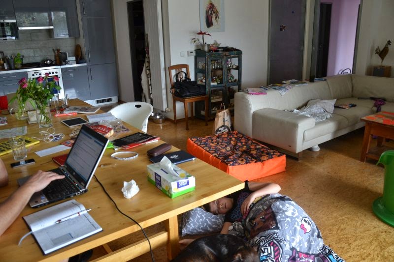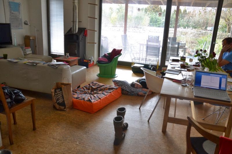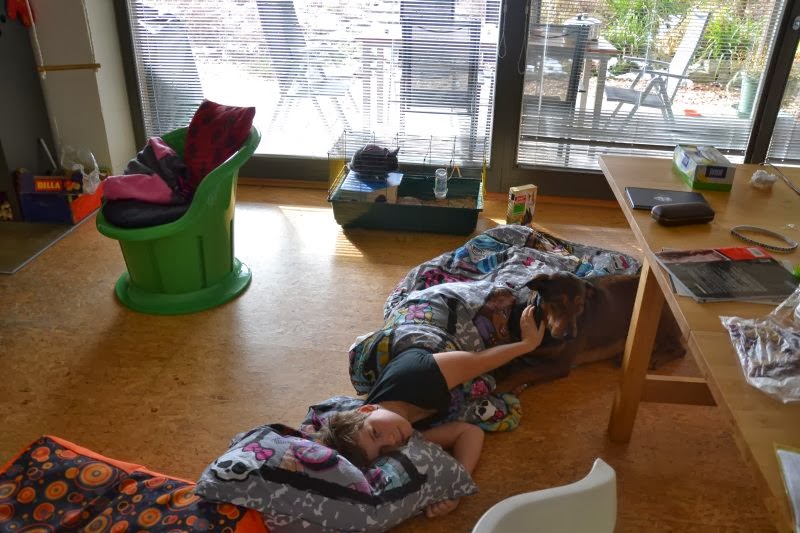Tak to mě pobavilo! Stela se totiž zula až asi po dvou hodinách, co jsme přijeli od doktorky a co si ustlala na zemi 🙂 Takže z kozaček rovnou do peřin.