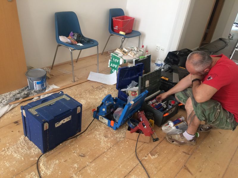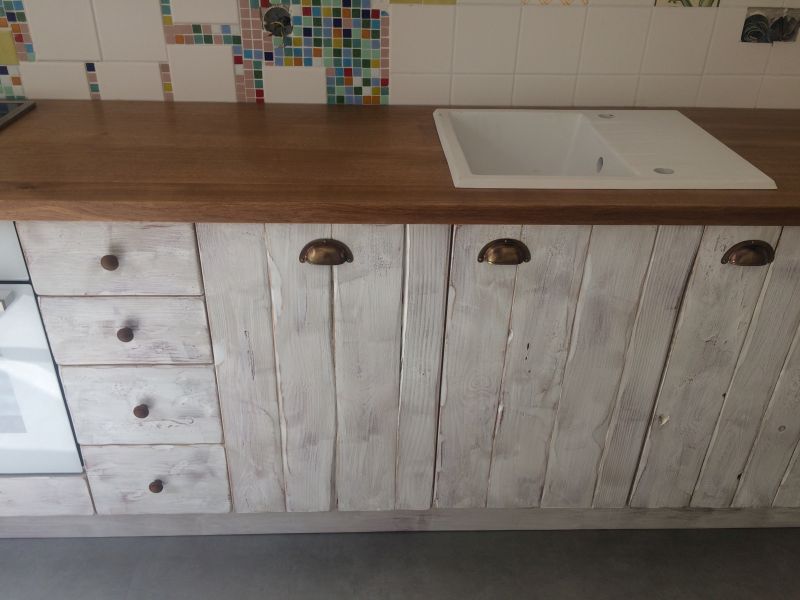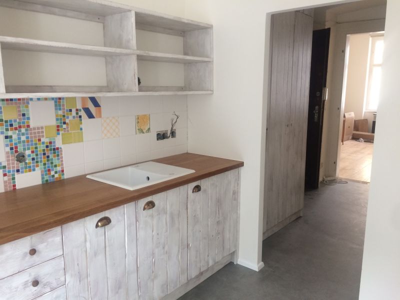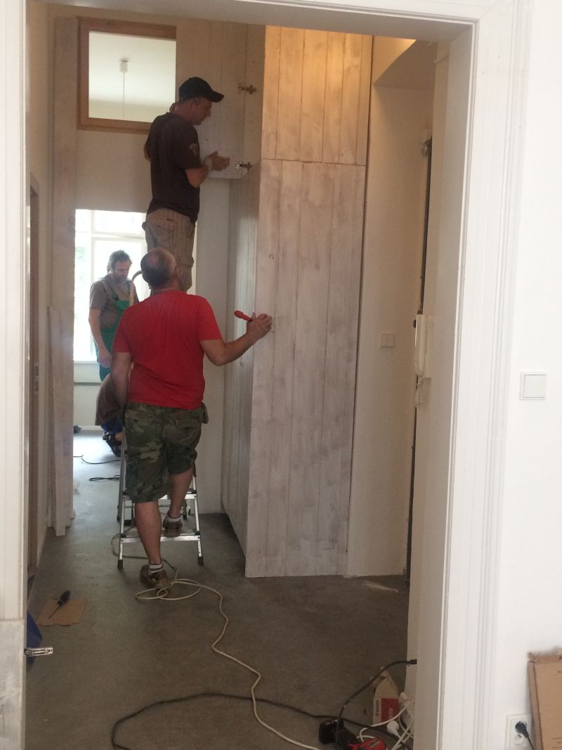 I se skříní v předsíni hotovo za 5 hodin, všechno musí sedět na milimetr, jinak se šéf vzteká. Prostě skvělý. Všechno podle mých představ, i chlapi si fotí výsledek. Dokud byla kuchyň se skříní jen po částech, nechápali, který blázen chce použít na výrobu opotřebovaná prkna.
