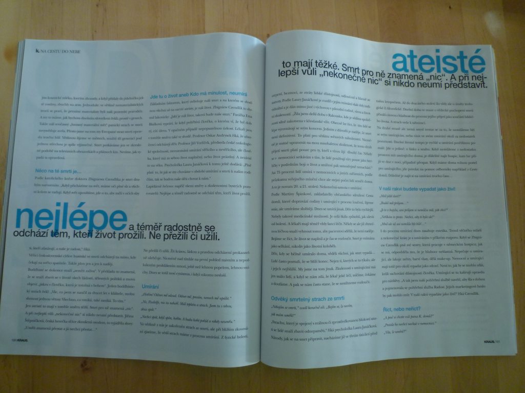 Nejzajímavější je opět měsíčník Kraus. Líbí se mi témata, grafika, má to švih, nápad, styl. Nenadržuju mu. Jeden článek je například uvozen slovy Radima Uzla (kterého je jinak všude plno a leze mi tím na nervy, ale asi i díky tomu si pro Krause může dovolit říkat věci, jaké říká):