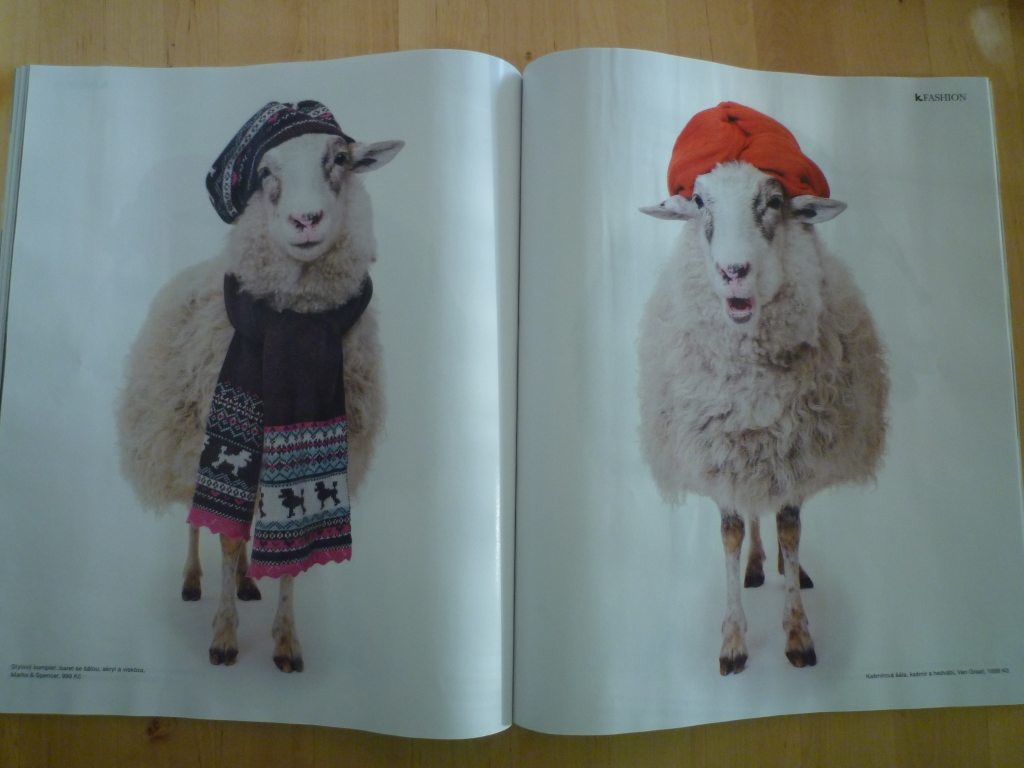 Pletená móda je vyfocená přímo na ovečkách.