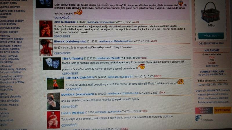 Je, tak zdrobneliny taky nesnasim. Vadilo mi, i kdyz mi mamka rikala Petrusko jako male. A polevce rikam odjakziva poleva, protoze i to mi prijde jako zdrobnelina:)) A i kdyz jsem na MD, tak na Mimibazaru jsem nikdy v zadny diskuzi nebyla – staci mi to videt takhle zprostredkovane. Ony i ty stranky maji priserny design. I kdyz, asi 2x jsem si tam neco koupila, protoze to jinde nebylo. Ale hysterka jsem prikladna, uz od prirozeni (vtip). To bych mohla vyucovat.