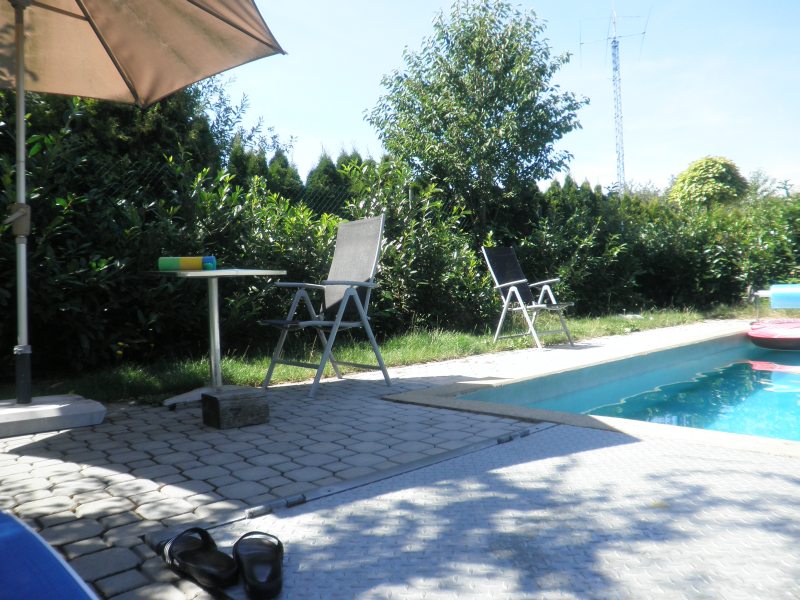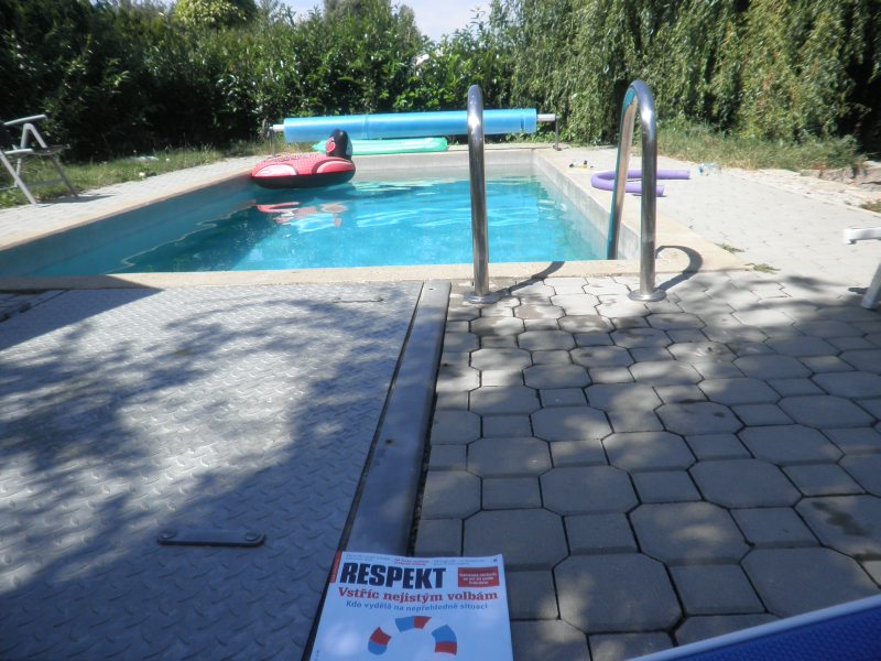 Letos jsem koupila k bazénu lehátka. Dnes jsem na nich (teda na jednom) ležela poprvé. Byla to krása. Stín, ticho, zeleno a modro.