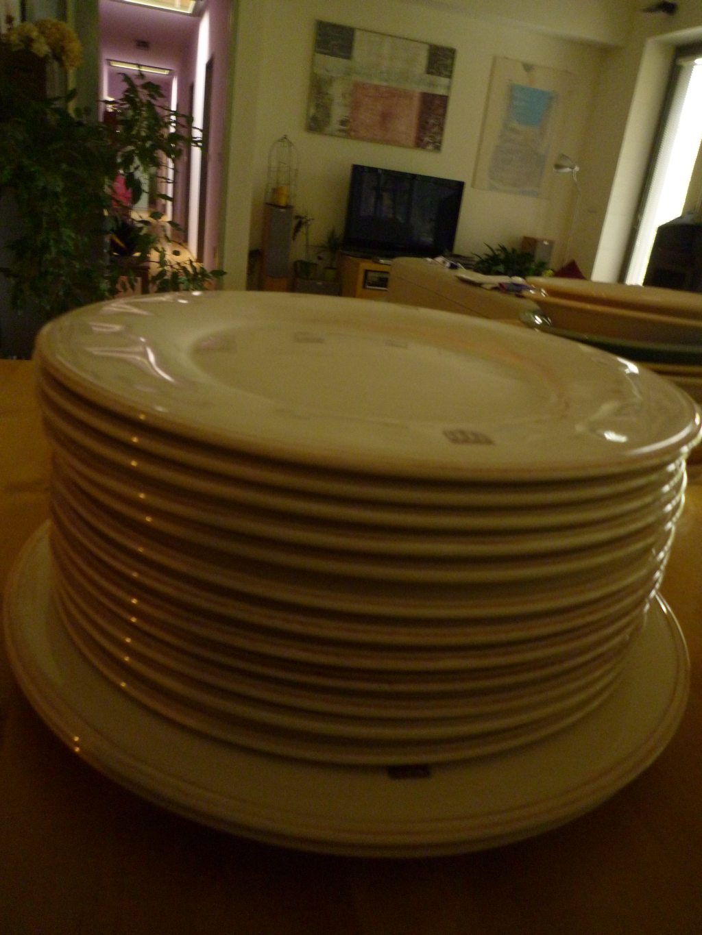 Včera byl ve firmě GANT, pro kterou pracuje Kryštof, tzv. crazy day. To znamená, že zaměstnanci a rodinní příšlušníci si mohli nakoupit jejich zboží s velkými slevami. To bylo něco! Značka GANT je dost drahá, doteď jsem neměla v šatníku jediný kousek jejich oblečení. Takže jsem si koupila kabát, svetr, šálu a tašku. Asi za 30% původní ceny. Bleskově jsme se taky rozhodli vyměnit naše stolní nádobí, protože několik let jíme z modrých talířů a už je máme okoukané. Navíc modrá mi připomíná cibulák, který opravdu nemám ráda. Snad proto, že za mých mladých let to byl vrchol luxusu (a my ho nikdy neměli), a taky nerada jím z talířů, na kterých je něco nakresleného. Byť modré cibulky. Je to prostě zásek z dětství, se kterým nic neudělám.