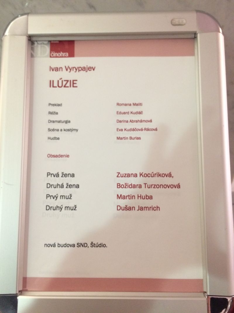 Pak krásnej čas s A., večer jsme byly v Národním divadle na strašně zvláštní hře. Čtyři herci přišli na jeviště, posadili se do křesel a vyprávěli příběh. Brala jsem to jako dost zajímavý experiment, ale evidentně to nebylo pro všechny diváky. Každé zakašlání, každé zaskřípání křesla bylo slyšet. Člověk si připadal trochu nesvobodný. Ale hra se mi líbila. Stará paní v první řadě dostala kašel, pan Martin Huba jí z jeviště podal svoji sklenici s vodou, aby se mohla napít. Sám pak do konce představení mluvil bez svlažení úst. Miluju gentlemany!