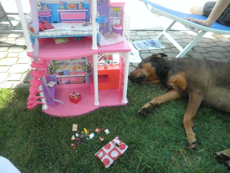 Jé už vidím naše dvě teriérky (možná by se přidal i 11letý bígl:-)), jak si pochutnávají na těch drobnůstkách pro panenky. U nás by tohle neprošlo.