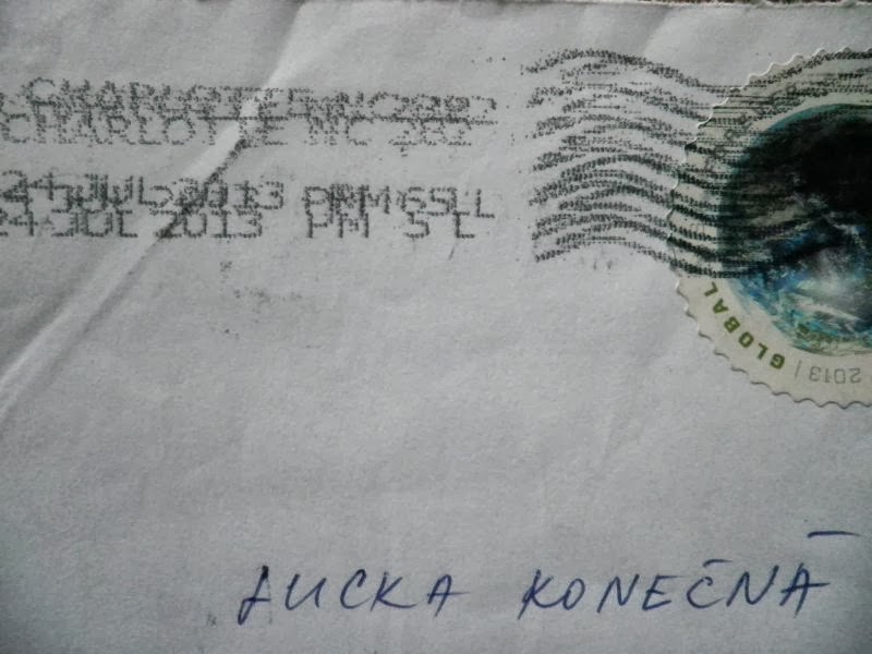 Dnes jsem našla ve schránce dopis, který mi před dvěma měsíci posílala ze Severní Karolíny kamarádka Adriana. Teda kamarádka je z Bratislavy, ale těšila se, jak mě překvapí, že mi pošle z takové dálky 8 stran psaných vlastní rukou.