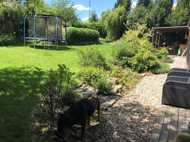 U každé tyče trampolíny mám květináč s černookou zuzanou. až nahoru se letos sice asi nedopopíná, ale i tak je to lepší. My ale s trampolínou celé léto nehýbeme, stojí pořád na jednom místě.