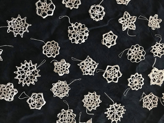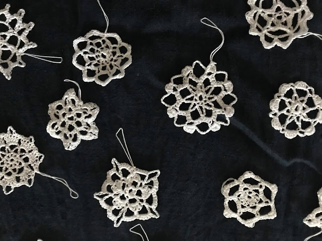Původně jsem chtěla stromek ozdobit něžnými háčkovanými a paličkovanými ozdobami, ale nakonec to bude jinak. Ukážu později, ještě není hotovo, i když strom už stojí a zdobí sám o sobě jenom se světýlky.