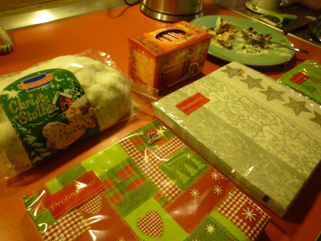 V den AŽ jsem si koupila v DM troje ubrousky. Už vánoční. A jakmile jsem zvedla hlavu od regálu a rozhlédla se, tak jsem zjistila, že už nám to zase začíná. Vánoce. Koupila jsem si pak ještě vánoční čaj a štolu, ze které děti vyďoubávají rozinky. Já ne.