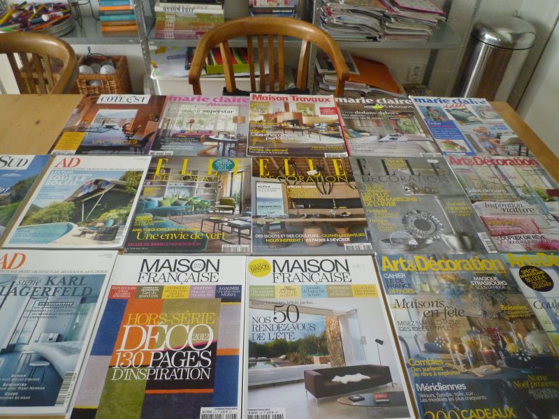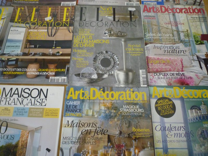 Vydražila jsem balík loňských Elle decoration, Art Decoration atd. Celková cena je hodně příznivá, cca desetina pořizovací ceny plus poštovné, což je přes stovku, protože to pár kilo je. Sice si moc nepočtu, je to všechno ve francouzštině, ale já jsem taková jednodušší, mně kolikrát stačej i obrázky.