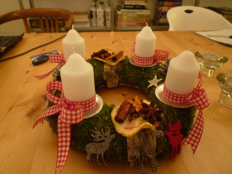Odpoledne k nám vlítla moje paní na uklízení a přinesla mi adventní věnec, který dělala její dcera. Měla jsem takovou radost, že někomu stojím za to, aby si kvůli mně dělal škodu (jak říkávala moje babička). Jeden krásný věnec mi vyrobila i moje maminka, ten jsem ale v úterý zapomněla v Liberci (jak už mi bylo zle a chamtivě jsem jim odvážela ty vánoční ozdoby).