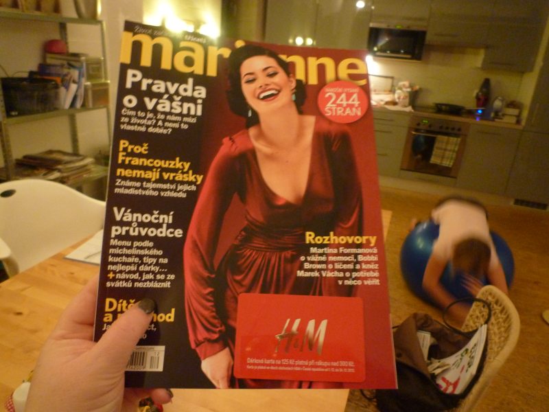 A vyšla i Marianne, kterou si kupuju jednou dvakrát do roka. Je tam kartička z HM, když u nich nakoupíte za tři stovky, sto dvacet pět vám odečtou. Tak já teda něco nakoupím.