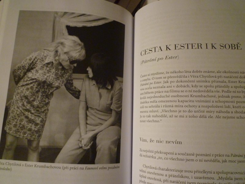 Pro mě je nejzásadnější kapitola o výtvarnici Ester Krumbachové, protože o téhle paní se toho moc neví a mně byla vždycky strašně sympatická. I proto, že byla velmi problematická, jak už géniové bývají. Paní Chytilová o ní natočila dokument Pátrání po Ester, mám ho ještě na VHS a čas od času se k němu vracím. Většinou v těžkých chvílích. Funguje líp než antidepresiva.