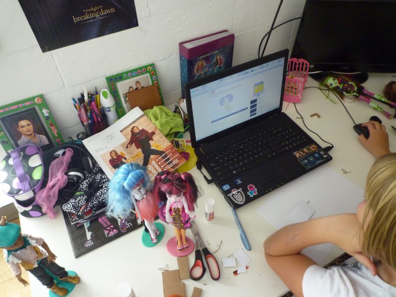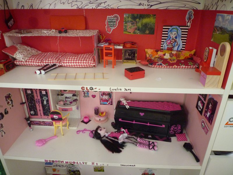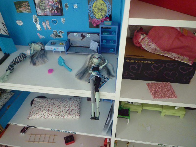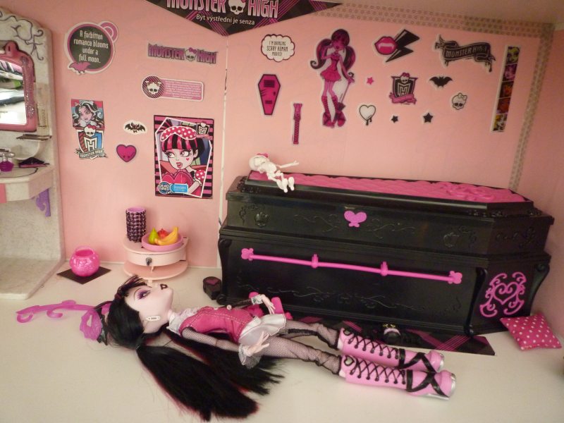 Asi před půl rokem jsem tu popisovala naši anabázi s Monster High, kterým Stela bez našeho vědomí vytvořila ve vestavěných policích pokojíčky. Měla jsem z toho šok, protože některé stěny počmárala centrofixem. Nemyslela to zle, je to její sebevyjádření. Já píšu, ona čmárá.