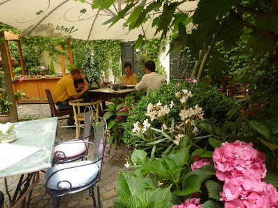 Kolegyně dnes vybrala pro pracovní schůzku nádherné místo. Pokud budete chtít nedaleko Staromáku v klidu pracovat, povídat si nebo se prostě zašít – zkuste to tady (Haštalská 1). Překrásný dvorek plný květin, kavárna s galerií, dopoledne v deset skoro ani noha, ale od pěti už venku narváno. Jako bonus výstava fotek Barbory Bálkové. Ceny mírné. Fakt zážitek.