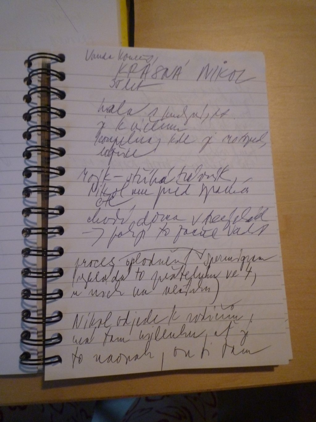 Dnes jsem narazila v jednom starém notesu na úplné počátky seriálu Ententýky, který teď píšu. Jsou to skoro čtyři roky zpátky, co jsem si začala psát poznámky. Je o pětici žen, které z různých pozic a s různými zkušenostmi řeší mateřství. A měla by to být sranda. Vlastně je tam i jeden muzikant na mateřský. A jiný chlapi jsou tam taky. Dnes píšu druhou verzi pátého dílu. Jestli se nic strašného nestane, tak to budeme od dubna točit pro ČT. Už týden probíhá casting, což je vždycky nejzapeklitější. Někteří oslovení herci překvapí, jiní třeba zklamou na celé čáře nebo nesedí k herečce, kterou už jsme ale předtím vybrali jako number one, takže místo roli, na kterou přišli, se zkoušejí na jinou … no je to cirkus. A vždycky to dopadne jinak, než čekáte. Původně měla Ententýky točit Prima, ale dostal to do ruky jakože dramaturg, který si s textem věděl rady asi jako já s operací mozku. Chtěl, abych to vlastně celé přepsala, protože vůbec nerozumím tomu, co píšu. Zato on tomu rozuměl. No, nedohodli jsme se.