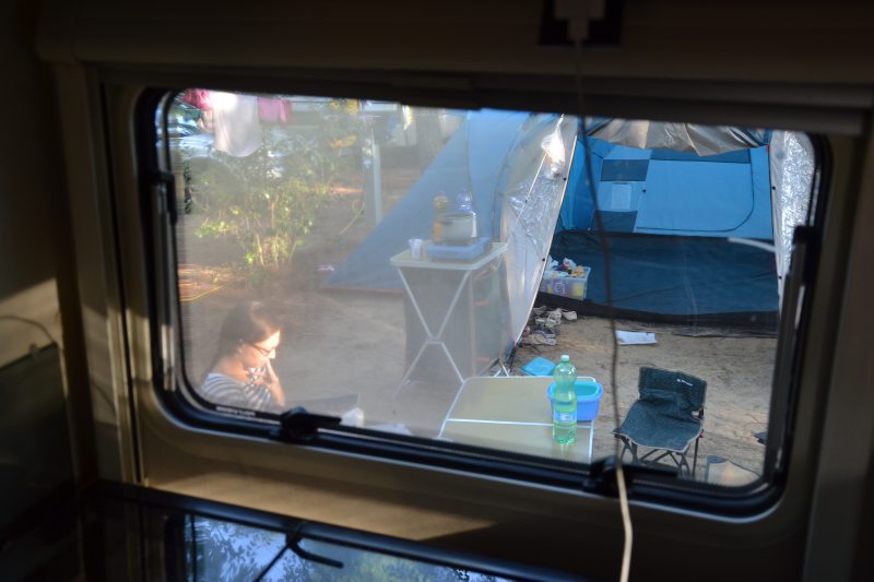 Luci, měli jste naprosto úžasnej karavan – ten bych brala hned. Ovšem tu mačkanici a absolutní nesoukromí, safra, to bych fakt asi nedala. Mám ráda ticho na čtení, klid na spaní a romantiku při výhledu do okolí … A tak nějak mám pocit, že stejně ještě přejedete jinam a nakonec se té úža dovolené dočkáte (tedy dočkali jste se, páč už jste zase doma).