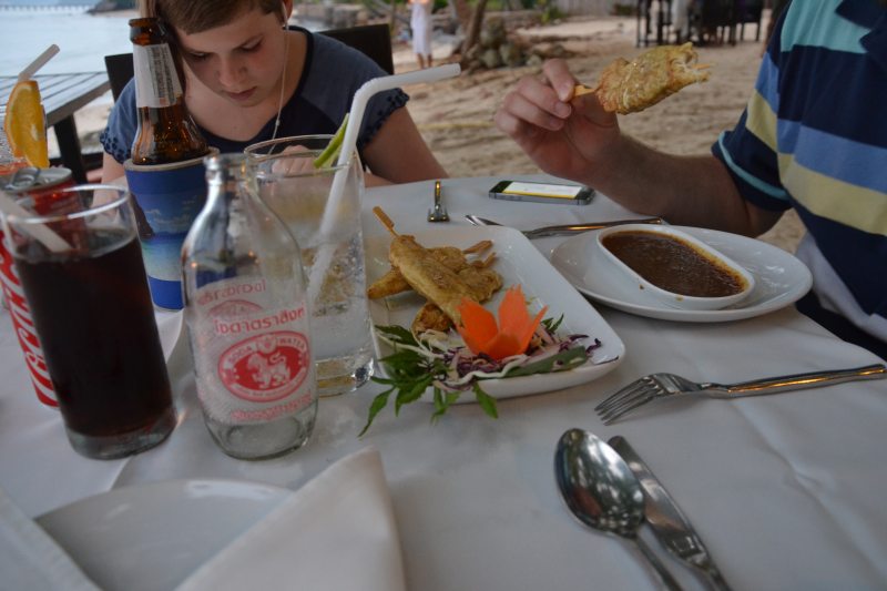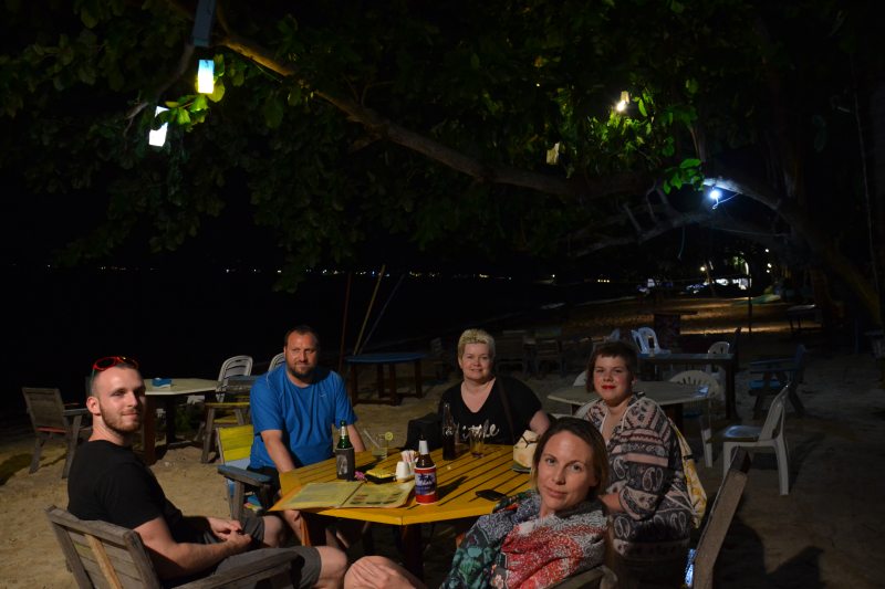 Máme čerstvý příšerný zážitek, kdy jsme chtěli jet někam, kde bysme si dali plody moře – taxikář nás dovezl na odlehlé místo, hospoda plná Číňanů (slaví se zde už týden nový čínský rok), za kilometr jízdy si řekl 4 stovky a nechal nás napospas. Takže jsme hospodu okamžitě opustili, pěšky jsme se vydali na silnici a stopovali. Nakonec jsme našli nádhernou restauraci přímo na pláži, číšníci se usmívali!!!! a ceny ve výsledku srovnatelné s čínskou jídelnou.