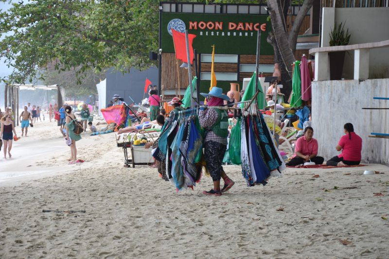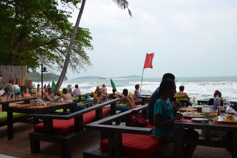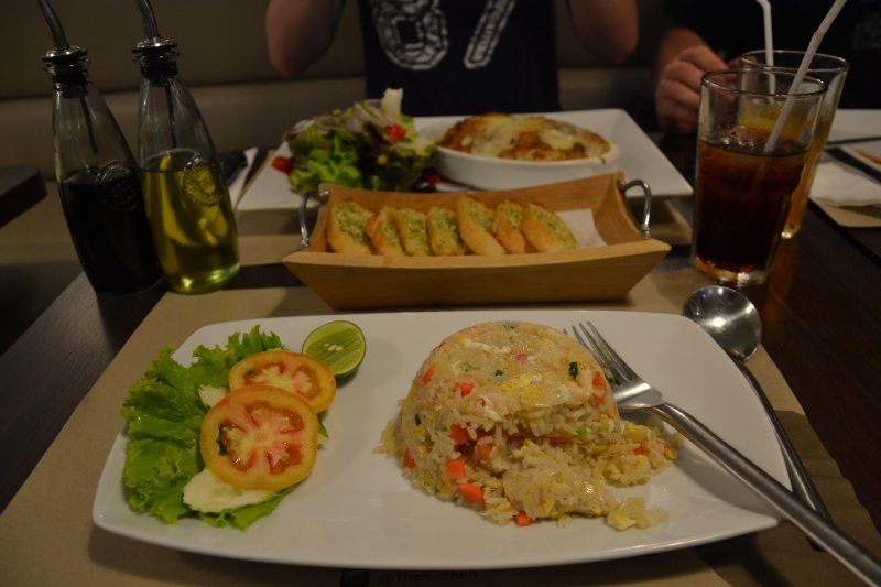 Kvůli obvyklým potížím, které neminuly nikoho z nás, nakonec hledáme restaurace podle Trip Advisoru, kde jsou hodnocení samotných turistů. Občas se daří, občas ne. Ceny jsou na stejné úrovni jako u nás, levně se nám podařilo najíst málokdy (a aby nám zároveň pak nebylo zle od žaludku). Jistotou jsou nakonec italské hospody, pokud je tedy vede opravdu Ital. Ten má v kuchyni Thajce, takže vaří mezinárodní kuchyni – a dobře. Ale připlatíte si. Opravdu nevím, kam bysme museli chodit jíst, abysme se vešli do cenových relací, které popisují průvodci. Já jsem si oblíbila Fried rice, trochu připomíná rizoto a je v podstatě nejlevnější na jídelním lístku (160-180 bátů).