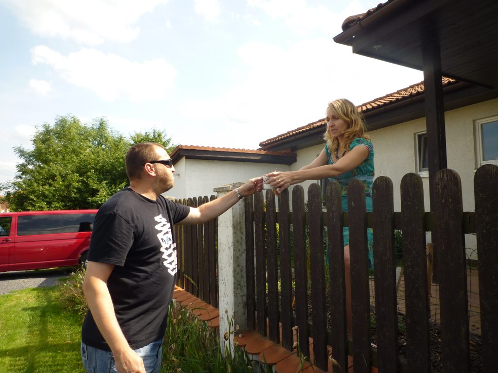 tak mu ho podávají přes plot,