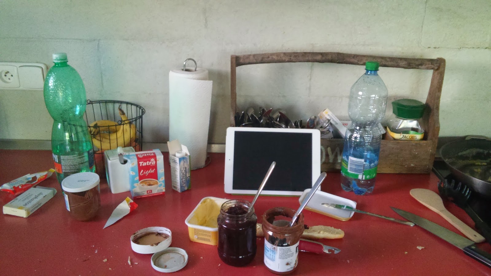 Jako u nás! bez tabletu si ani neumyje zuby a na svačinu jeden rohlík s nutelou a druhý pro změnu s marmeládou, páč sladkého není nikdy dost…. 🙂