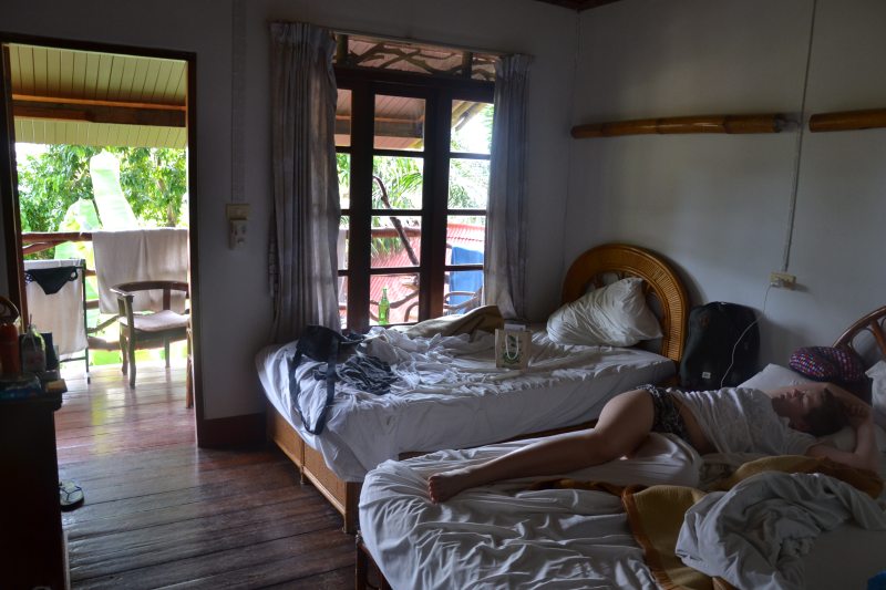 Bill je ve svahu nad mořem, my máme bydlení v chatě na kůlech. Fakt stylové,
