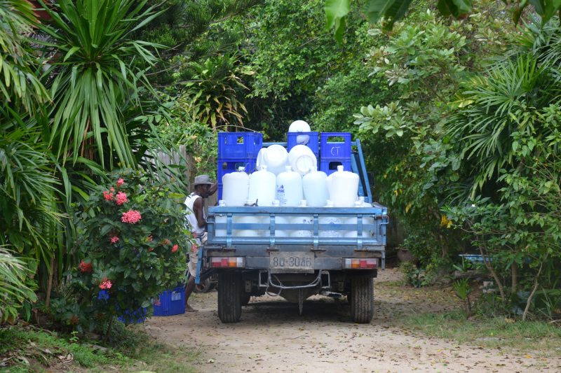 stejně malé místní letiště se podobá botanické zahradě. Na záchodě plavou