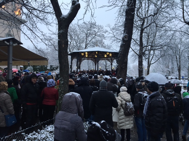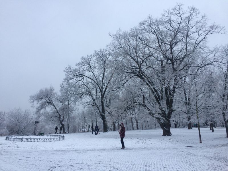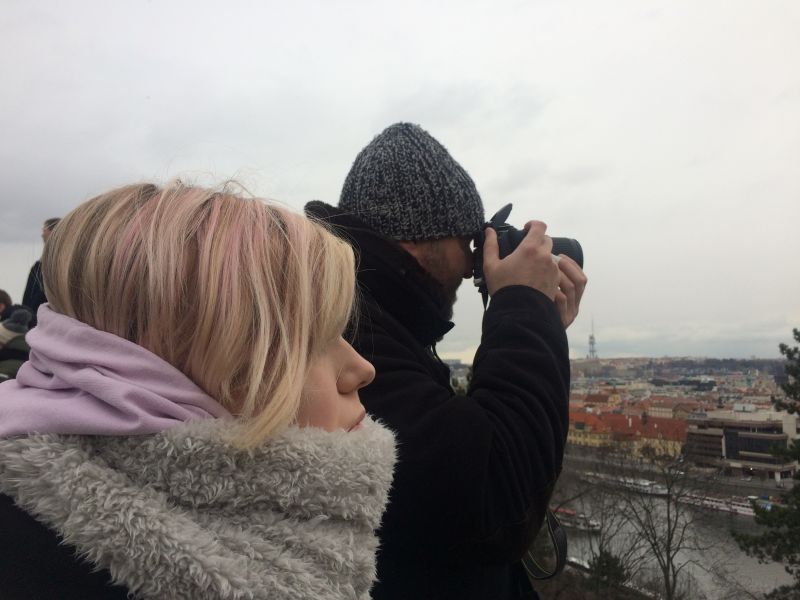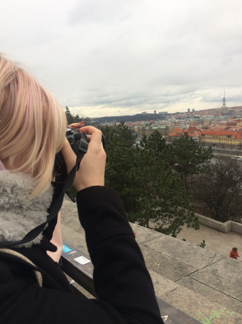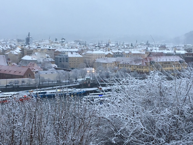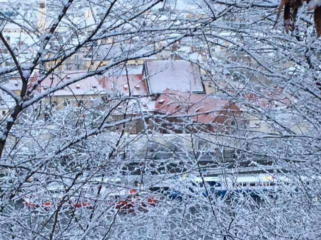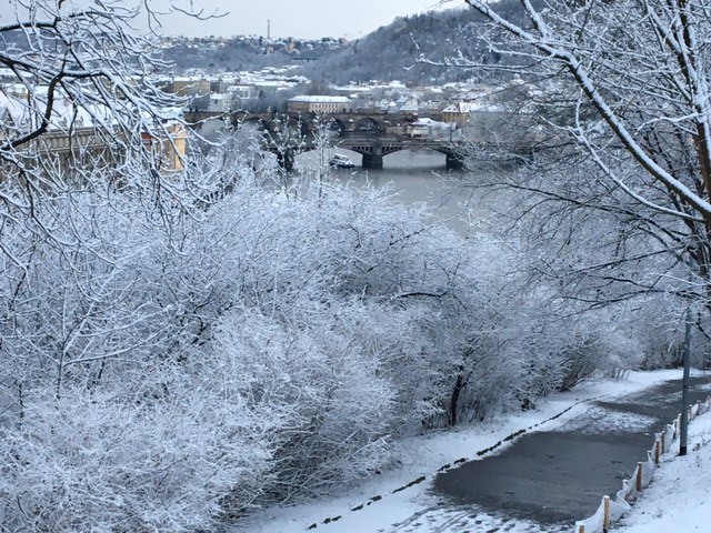 Stela měla za úkol něco vyfotit, tak jsme s ní jeli na Letnou, pokračovali do zajímavé kavárny Ye´s kafe, kde jsem poprvé od dětství měla kakao s barevnejma mini bublinkama. Způsobilo mi to až dětskou radost, určitě znáte tyhle dejavu. Pak začalo sněžit. Takže honem zpátky fotit, protože panenský sníh nevydrží dlouho a vánoční sněžení v Praze se rovná zázraku! U Letenského zámečku zrovna zpívali koledy a všechno to bylo hrozně sváteční a milé.
