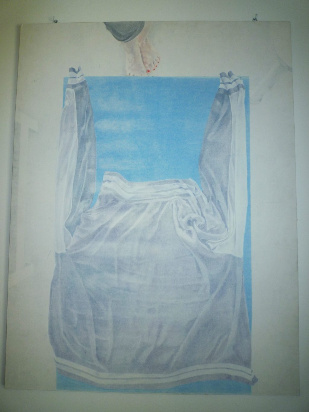 Tohle je můj zamilovaný obraz a jmenuje se Žehlení. Namalovala ho Kateřina Adamová. Vyhlídla jsem si ho na její výstavě v Olomouci, ale pak jsem neměla peníze. Když jsem na něj ovšem další půlrok myslela, našla jsem si Kateřinu přes internet a jela si ho koupit přímo k ní domů. Ta slast! Co z toho vyplývá? Že některé lásky můžou klidně počkat, ale nesmíte si je nechat utéct.