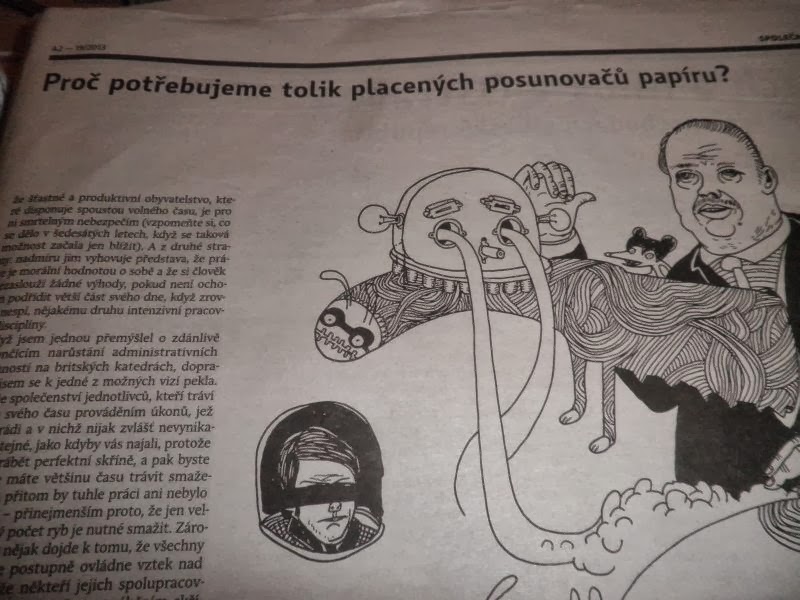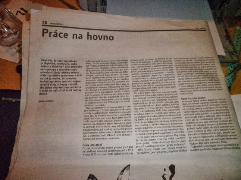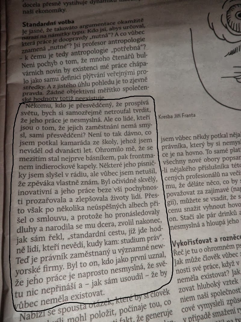 Co mi ale smysl dalo, byl úžasný článek (s tím sprostým názvem) o nesmyslnosti některých zaměstnání, o tom, jak se v nich lidé cítí zbyteční a frustrovaní. Shodou okolností jsme na podobné téma dnes zabrousily i s Iri při společném obědě (úžasné švestkové knedlíky).