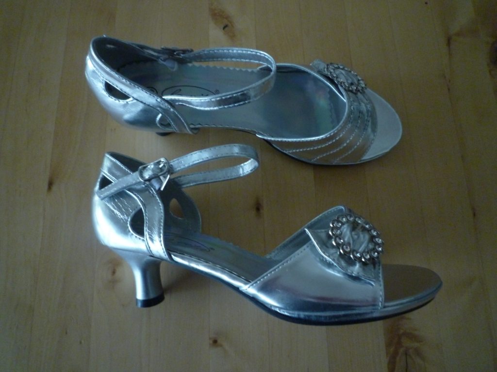 V Kotvě (kde jsem byla snad po dvaceti letech)je oddělení bot a maj tam i plesovky. Hódně jich tam maj. Dětský i dospělý. Stela, když je viděla, tak normálně vykřikla a utíkala k nim. Pak si je zkoušela na tlustou špinavou ponožku, ale okamžitě se cejtila jako hvězda. Sranda, ty děti. Byly dost zlevněný, ale i tak – pětikilo.