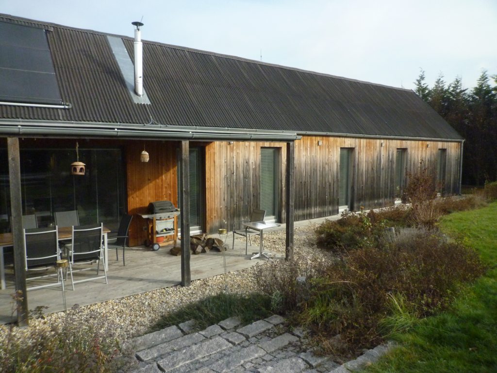 Náš dům za osm let dostal fantastickou patinu. Z jedné strany je obložen obyčejnými smrkovými laťkami, nijak neošetřenými, z druhé strany cetris deskami. Je to jakési poznávací znamení architektů Schaufler – Roskovec, kteří nám dům navrhovali. To ještě nebyli tak slavní jako teď. Zadání bylo takové, aby vypadal CHUDĚ. Architekti se smáli a říkali, že vzhledem k tomu, jaký má mít rozpočet, tak chudý bude rozhodně. A povedlo se jim to! Naprosté většině se náš dům samozřejmě nelíbí, hlavně těm, co si okolo nás staví hrady a zámky nebo aspoň odvozeninu z toho. Což zase nesnáším já. Trpím rozdvojením, protože náš dům miluju a zároveň nemám ráda místo, ve kterém bydlíme, moje duše lítá v Kokoříně. Kdyby to šlo, tak tam tenhle dům přenesu. Jenže to nejde. Takže naše plány jsou takové: příští dům si postavíme v Kokoříně. A hádejte, jaké architekty oslovíme …