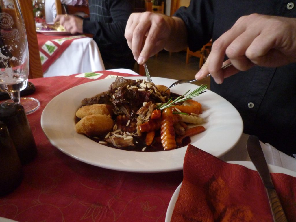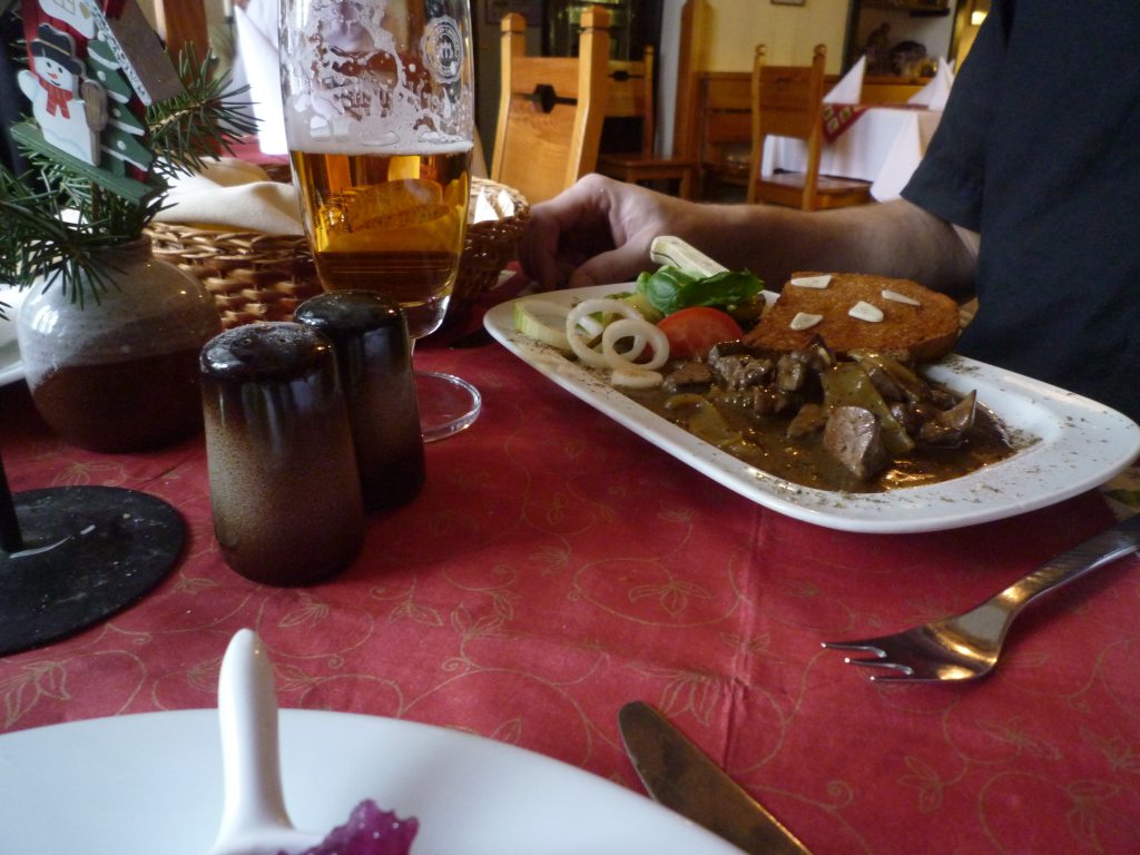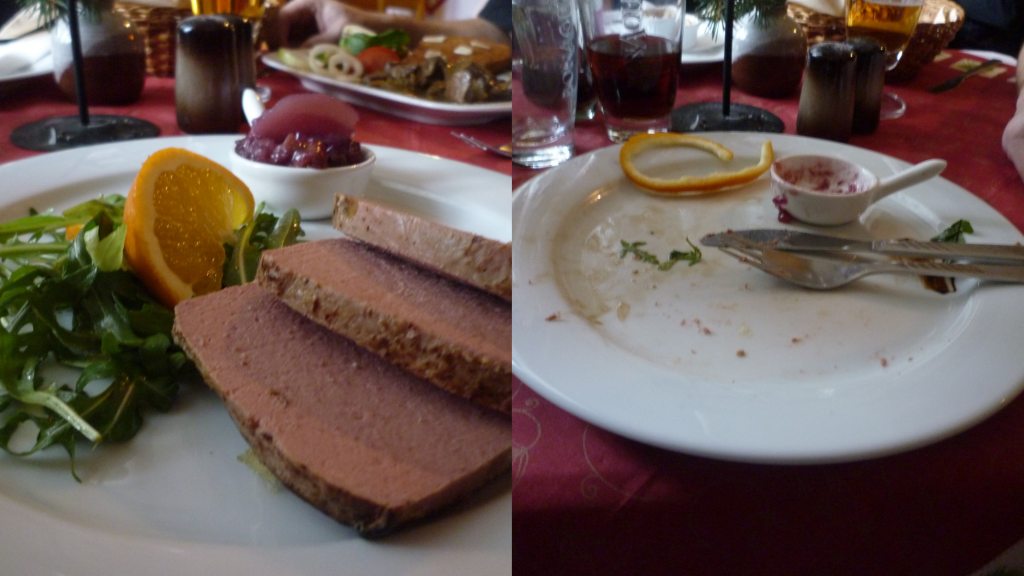 zvěřinovou paštičku s hruštičkou, malinové balzamico