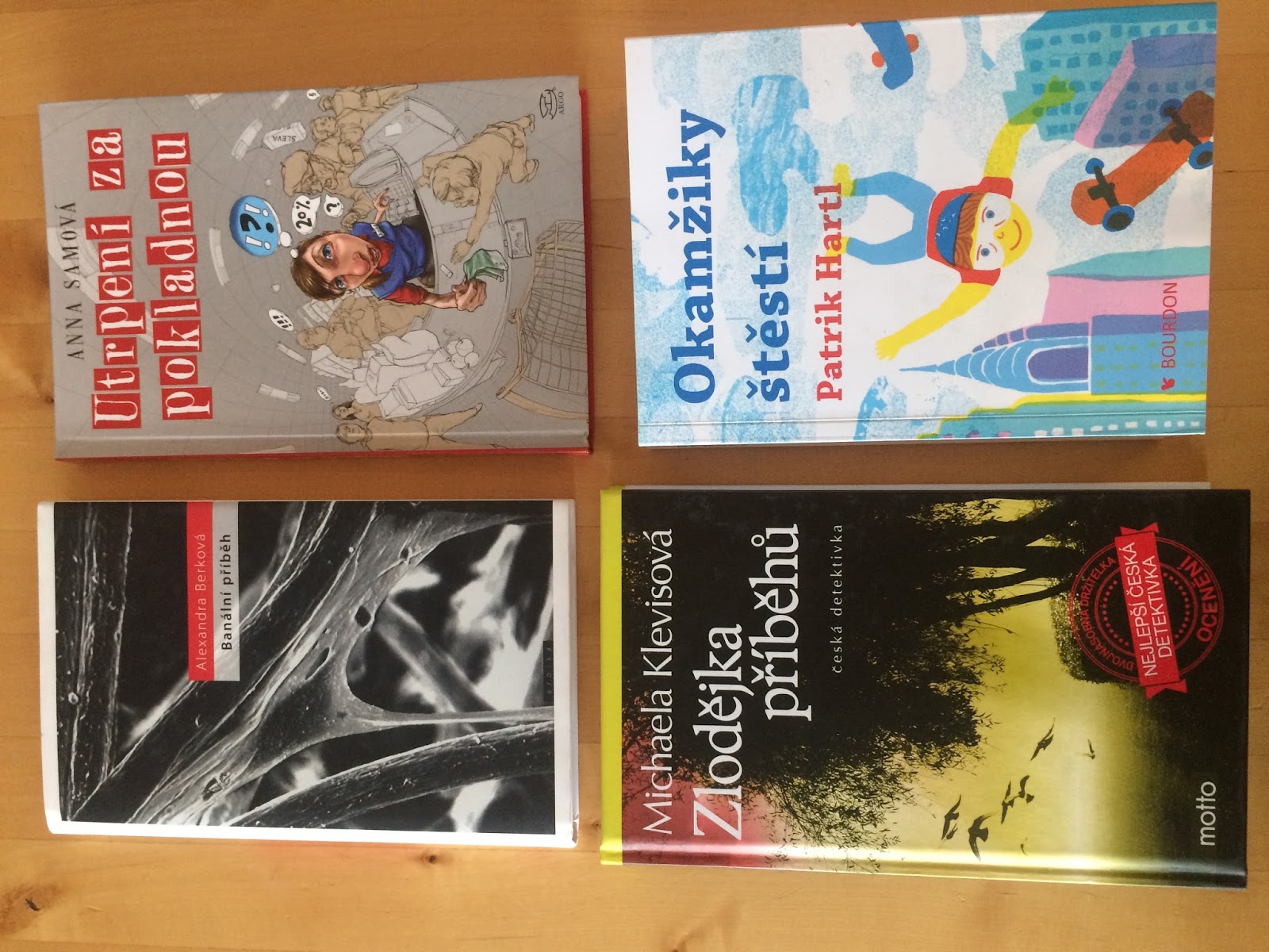 Okamžiky štěstí – český bestseller No. 1. Půlka knihy psaná z pohledu ženy, druhá půlka z pohledu muže. Začala jsem tou ženskou půlkou, kterou jsem přečetla celkem rychle a bavila mě, ale když jsem otočila na mužskou půlku, učetla jsem asi třicet stran a mám problém se ke knize vrátit. Ale takhle já to mám s těma českejma bestsellerama nějak vždycky.