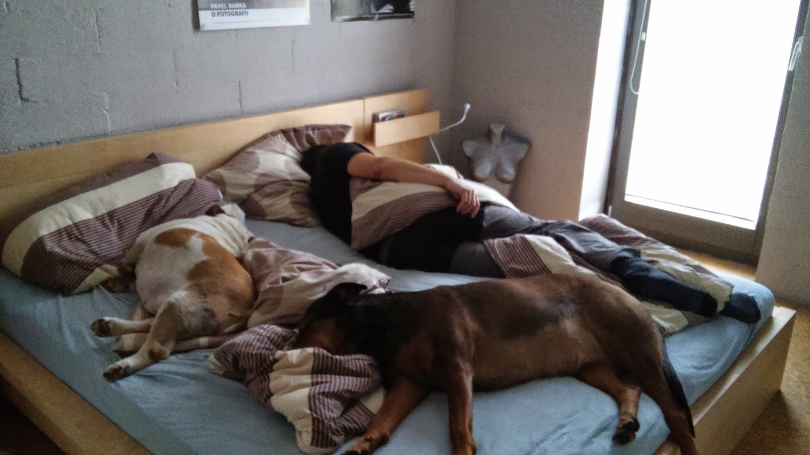My to máme stejně, plus jsem ještě někdy navíc obalená třema kočkama 🙂 t.