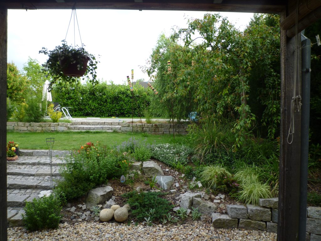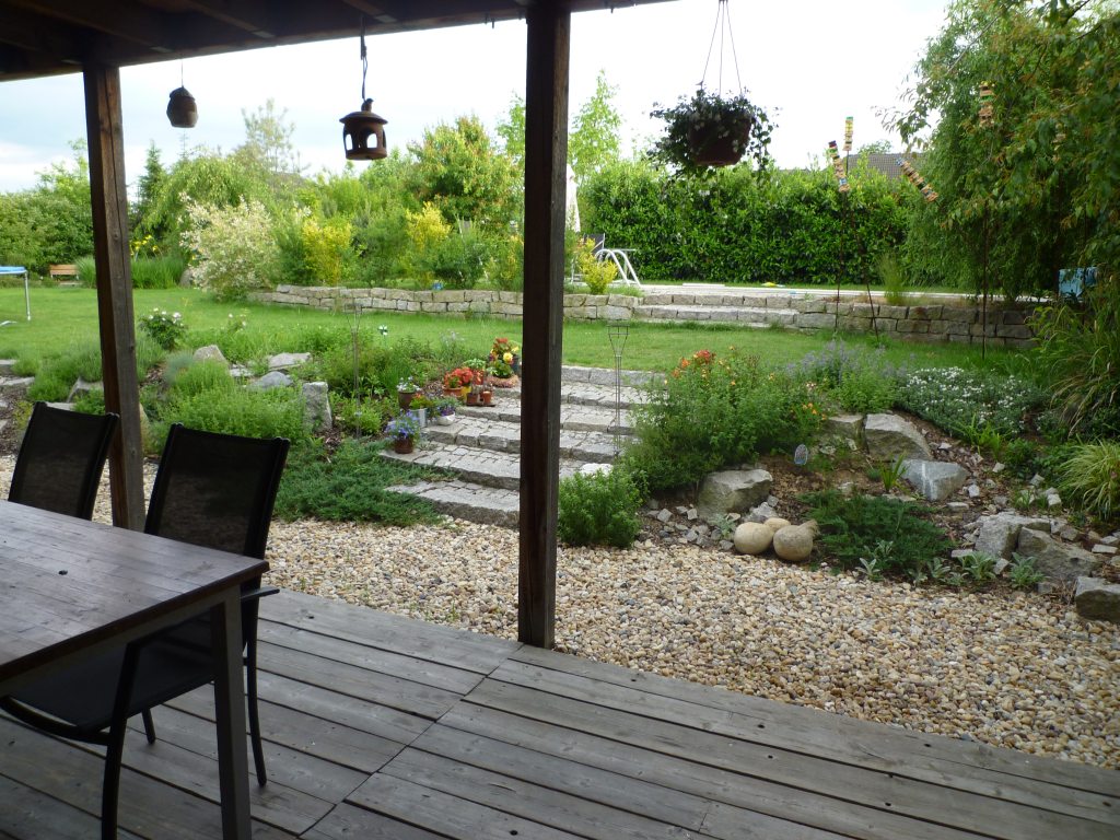 Před šesti lety tu byl jenom jíl, který déšť splavoval k domu. A hromada hlíny ze stavby, na ní metr plevele. Pak přijela kamarádka Lída z Brna a vymyslela nám zahradu, jako by ji dělala pro sebe. Nechali jsme se překvapit. Pak jsme rok po roku vždycky něco zbudovali. Nejkrásnější je na podzim – úplně zarostlá. Žádný túje, pěšinky, keře sestříhaný do tvaru koule (jak vidíme u sousedů), ale divočina!