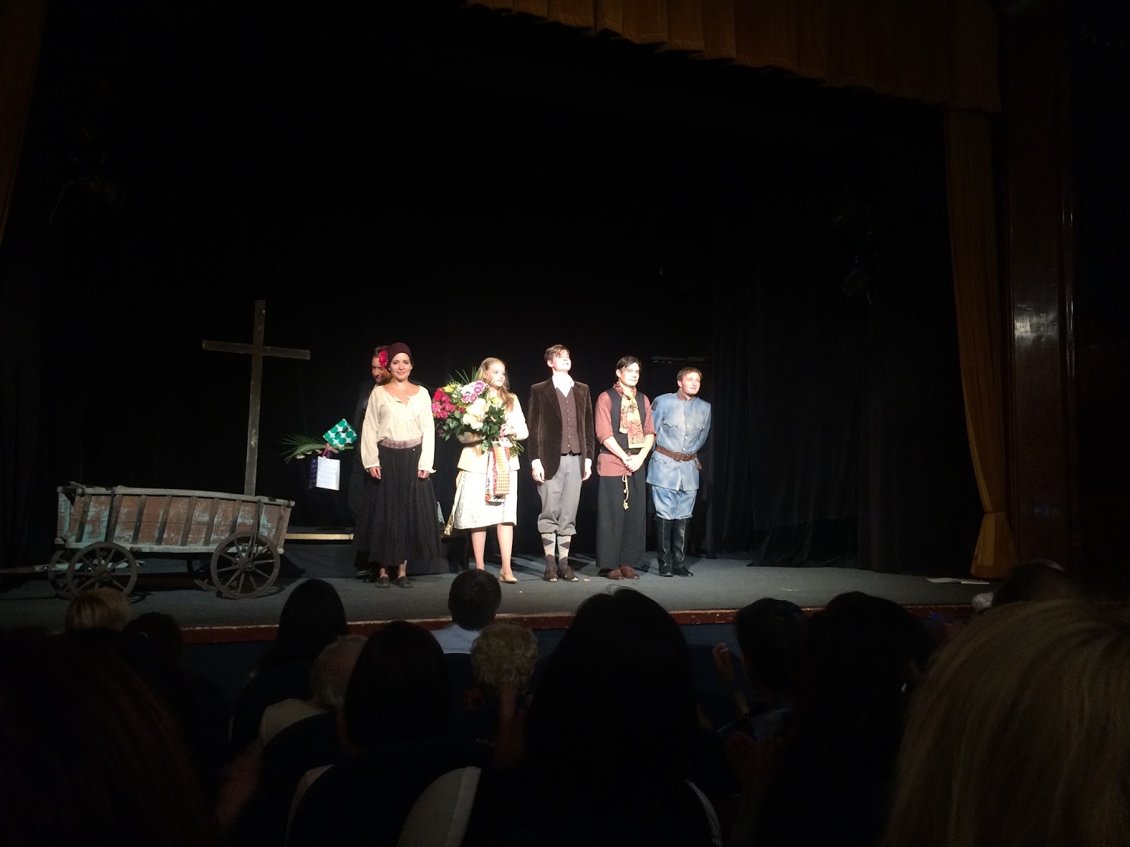 Šla jsem se podívat na jednoho mladého herce, kterého jsem si představovala při psaní Karavanu (jedna z hlavních rolí). Nezklamal. Bála jsem se, že tahle hra je přežitá a trnula jsem, jak budou vypadat milostné scény, které mi vždycky přišly naivní. Naštěstí se povedly a trapné to nebylo.