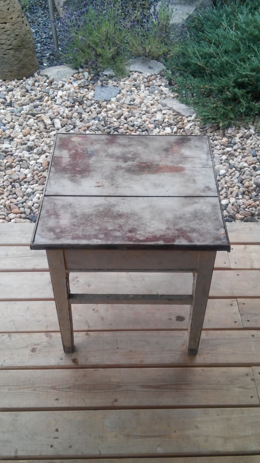 Máme podobnú stoličku. Pred pár rokmi jej manžel natrel nohy bielym balakrylom, umakartovú škaredú vrchnú dosku a zničené pánty sme dali preč, stolár urobil peknú drevenú dosku a stolík teraz slúži v obývacej izbe ako nový.
