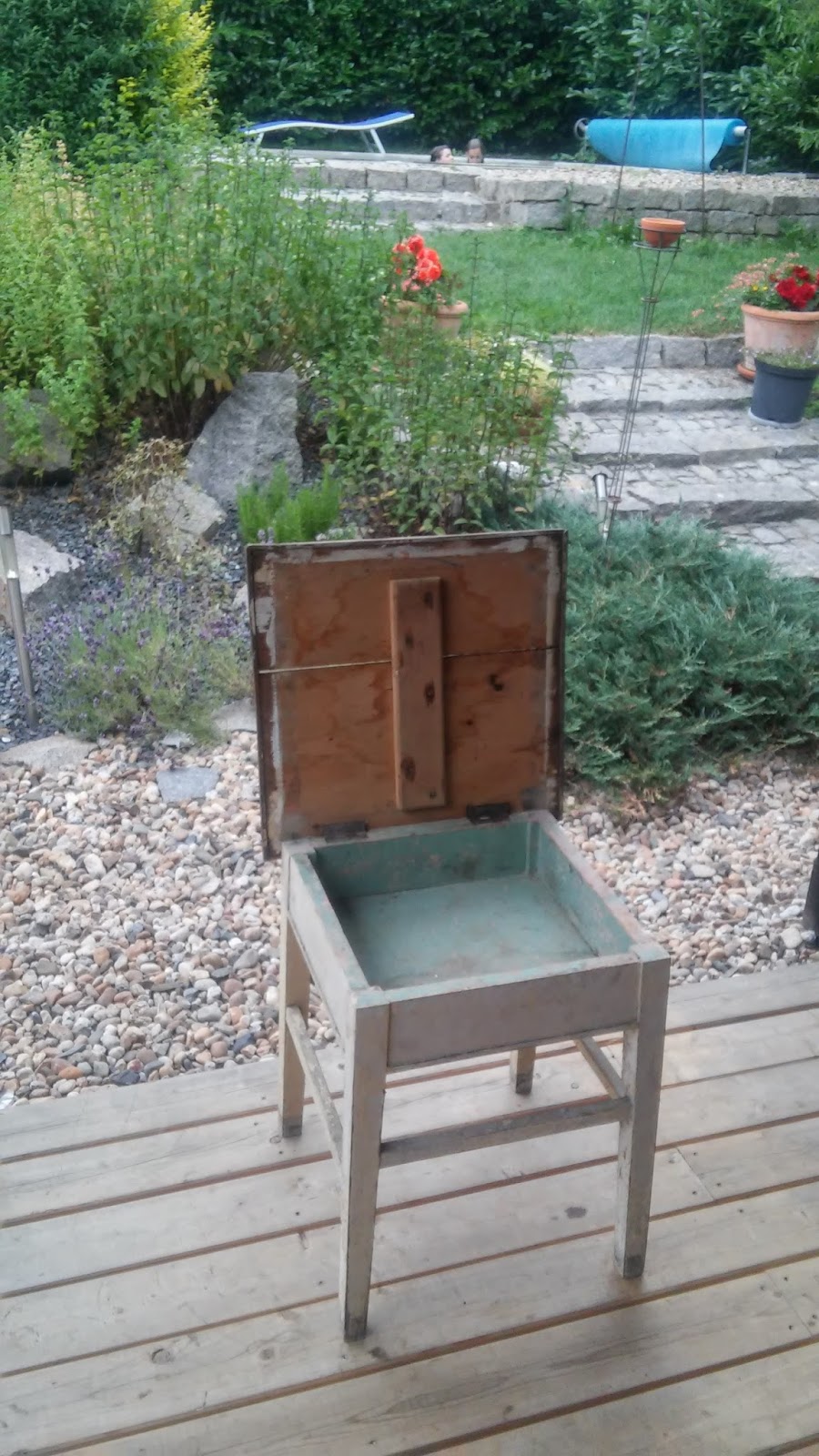 Tak tomuto kousku nábytku říkala naše babička štokrdle. Sloužilo obdobně jako ve vaší rodině,navíc u nás občas i jako dětský stolek. Sedací (pracovní) plochu pokrýval velmi odolný korek.Bohužel při "modernizaci" domácnosti skončilo štokrdle na zahradě. Dnes by bylo bezmála stoleté.