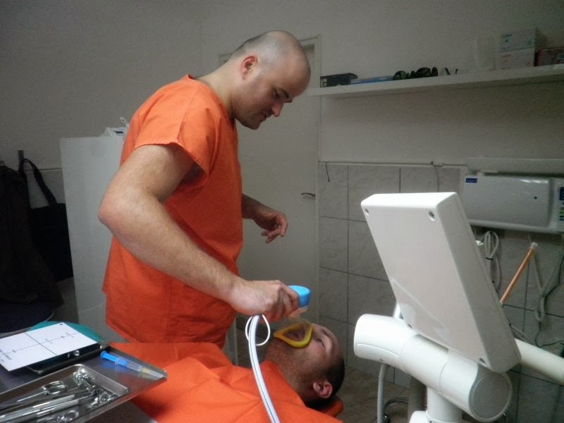 …. kdož napsali, že budu zubařkou. Resp. zubní asistentkou. Doktor mi zavolal, že nemá na včerejší večer sestru a jestli si nechci zkusit odasistovat Kryštofa. Zákrok trval 3 hodiny! Ale strašně mě to bavilo, Kryštofa už míň. Myslím, že bych tuhle práci mohla klidně dělat. Akorát se nedivím, že pan doktor vždycky se svojí asistentkou chodí. Je to tak intimní – pracovat čtyřručně na pacientovi s hlavou nalepenou vedle sebe. Pro mě je všechno novinka, protože dřív se samozřejmě takhle nepracovalo, skoro všechno si doktor oddřel sám. Pro mě jsou tohle výlety do budoucnosti, já jsem ještě stará zubařská škola.