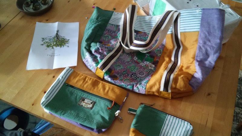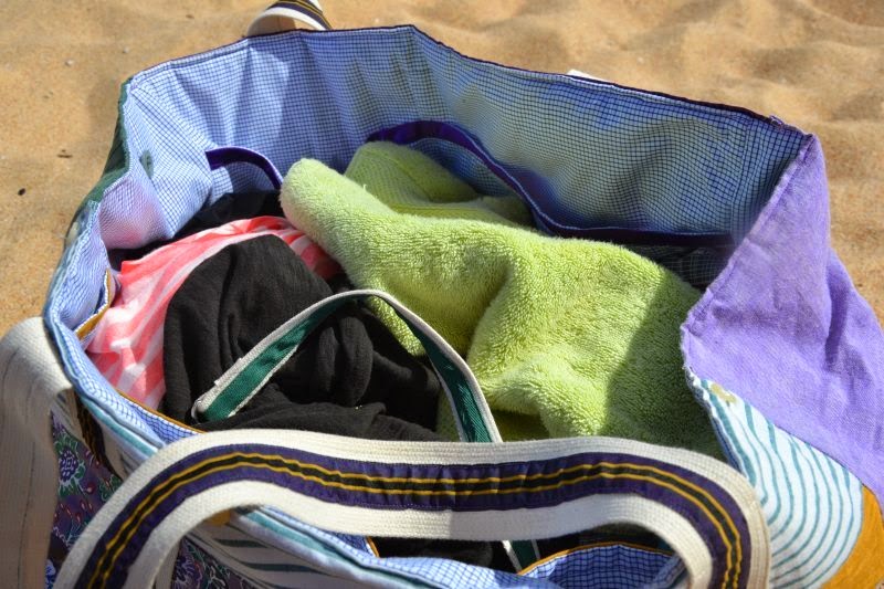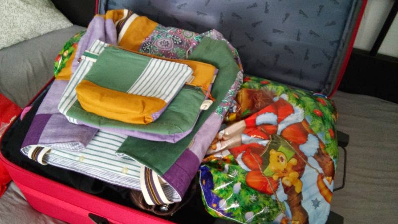 Takže deset minut před odjezdem na letiště přijela pošta a přivezla mi od jeve hand made úžasnou soupravu plážové tašky a dvou kosmetických. Tož jsem odemkla kufr a dala je navrch, aby se holky se mnou podívaly do teplých krajin.