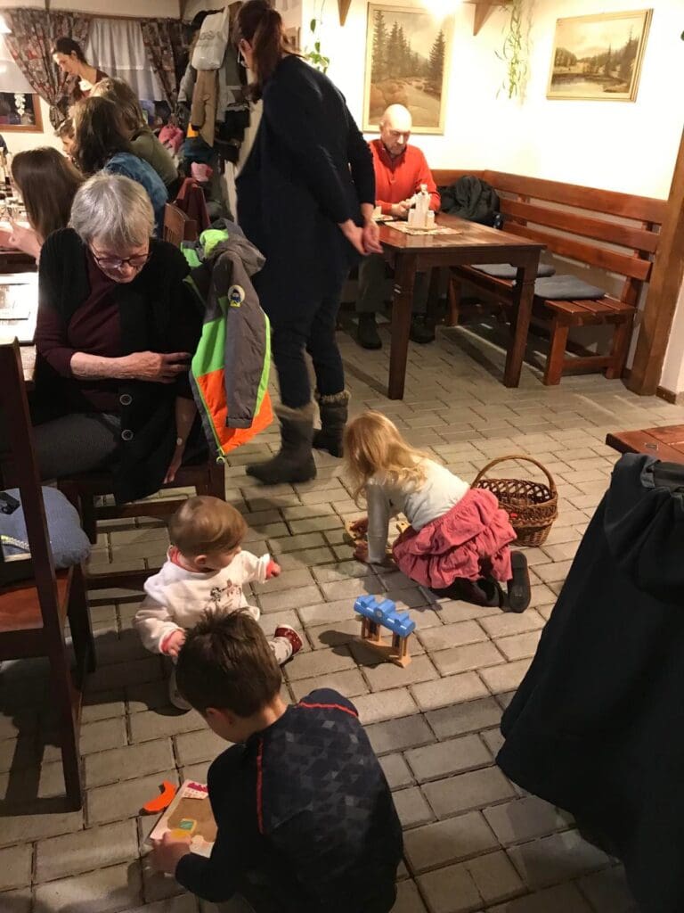 Vzali jsme s sebou Tobiase, miluje spát na nových místech. Ségra I. měla v jedné hospodě oslavu kulatých narozenin, tak jsme se tam pěkně sešli. Víkend venku je fajn, člověk se na svůj život dokáže podívat trochu z dálky a to je osvěžující. Neuměla bych být pořád jen doma. Hráblo by mi.