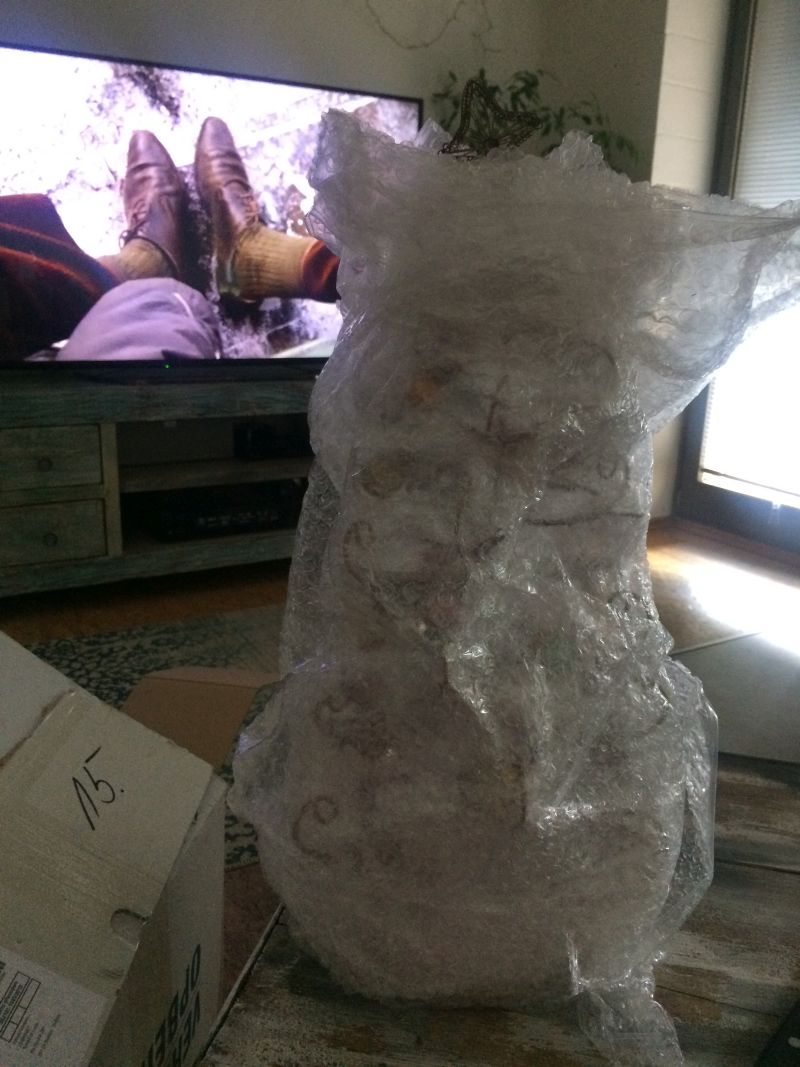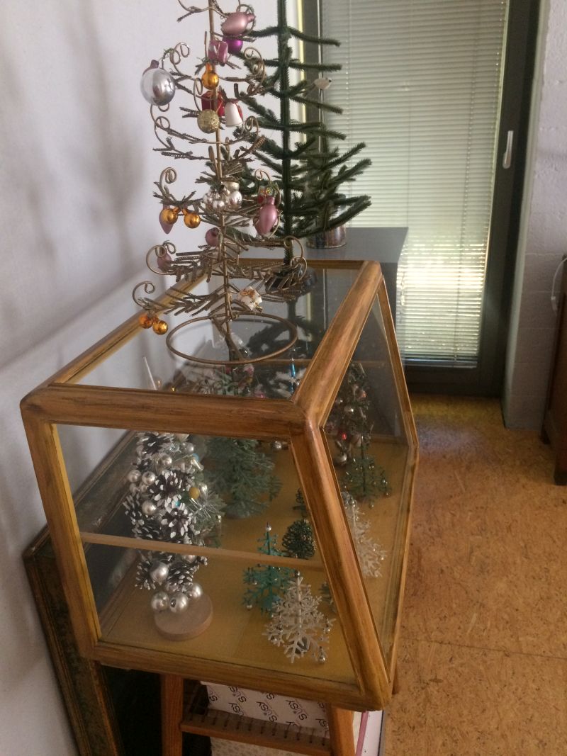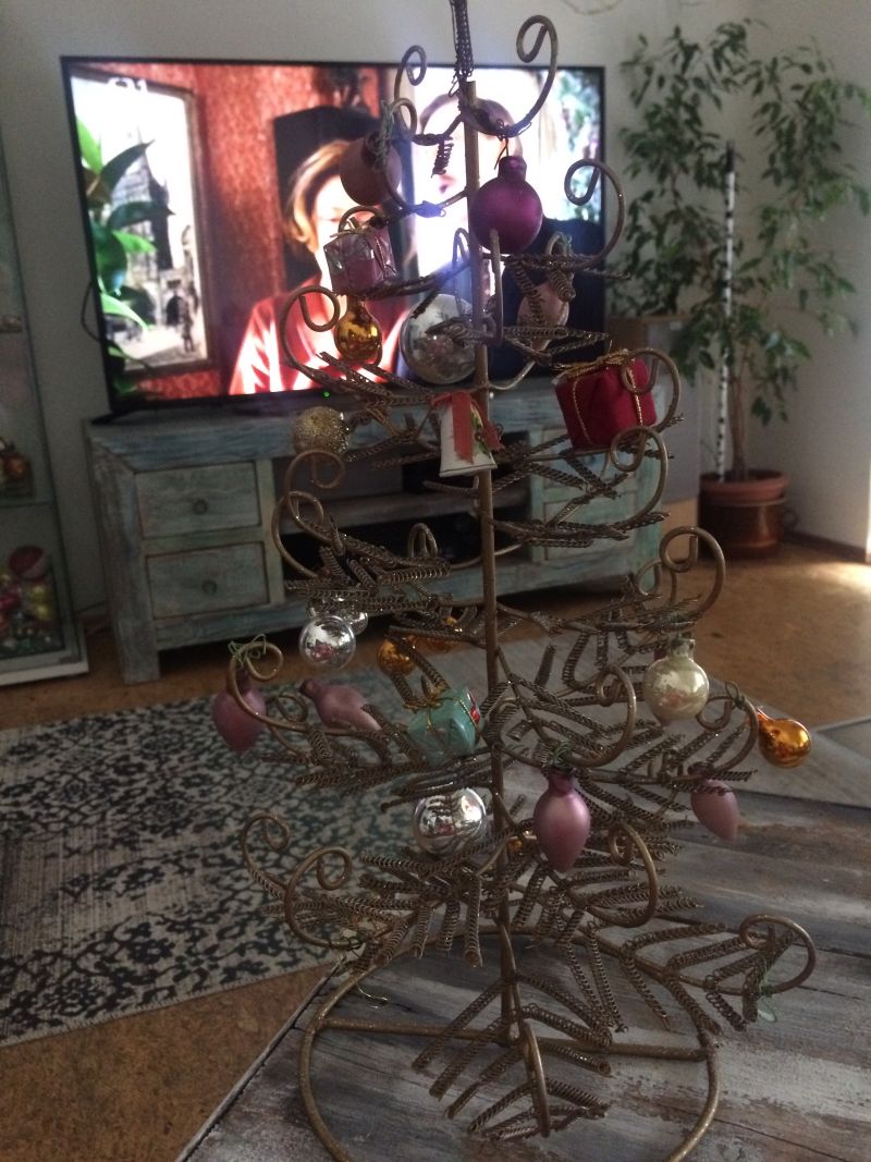 Tuhle aukci jsem vyhrála za základní cenu, nikdo nepřihazoval. Možná i proto, že majitel stromku měl špatně nafocené fotky. To je vždycky chyba, protože se připravuje o peníze. Někdy je nutný riskovat a to přesně jsem udělala. Nevěděla jsem, jak přesně stromek bude vypadat, měl totiž pár opravdu ošklivých současných ozdob (ty jsem hned vyhodila – křiklavý plast), a to možná ostatní sběratele zmátlo. Pro mě je to skvost, za celou svoji sběratelskou kariéru jsem nic podobnýho neviděla. Tipla bych si, že stáří je minimálně 100 let.