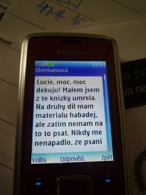Hned jsem jí posílala sms, že jsem Tajnou knihu přečetla jedním dechem. A ona mi odpověděla, že ji ještě nikdy psaní tak nebolelo. A že teď sedí na louce a odpočívá. To už tak víly někdy dělávají.