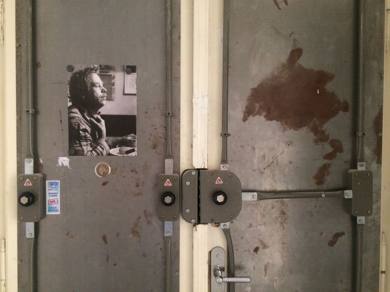 koláž z fotek, nebo z výstřižků z novin v černo-bílé kombinaci, která by pokryla celé dveře, by nebyla k zahození. Když už jste začala…