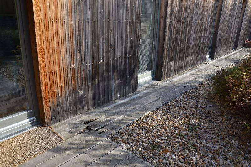 Fasáda je z obyčejných latí z Bauhausu – nevím, jestli smrk nebo borovice.